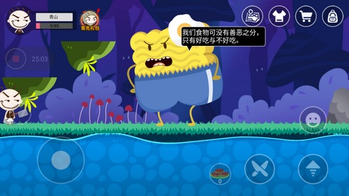 冒险不止于跑图:每个区域都藏着烹饪谜题——用西瓜汁浇灌干涸土壤唤醒种子、将冰激凌与辣椒粉混合制造低温烟雾迷惑守卫、把寿司卷成弹簧触发机关……食谱既是战利品,也是解谜工具;而每一场Boss战,都在考验你对食材特性的理解与临场组合能力。
