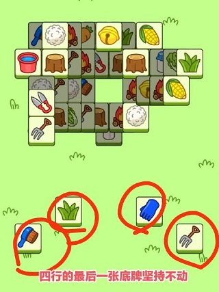 第一步:优先清空底部四行——仅保留每行最后一张牌!此举并非浪费步数,而是为后续腾出关键“隐藏备用位”。