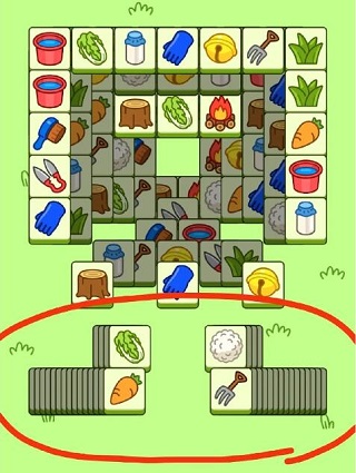 第二步:集中攻坚上方主牌堆,严控道具使用节奏。保留四张底牌,等于额外获得7格操作空间(3格抽取+4格预留),相当于将7格卡槽扩容一倍!