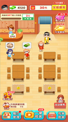 想让餐厅门庭若市、日均客流稳破5999?游戏提供双轨成长路径:一是沉浸式经营路线——通过优化服务动线、升级菜品品质、举办限时活动,自然积累口碑与回头客;二是高效拓展路线——合理使用钻石资源,快速引入人气客流,加速前期冷启动阶段。两种方式均符合游戏经济平衡,不逼氪、不卡关,真正由你定义成长节奏。
