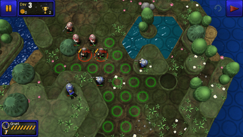 游戏独创“动态兵员+回合调度”机制:每关随机生成士兵组合(步兵、坦克、装甲车、军舰等),玩家需在有限格子内布阵、移动、攻击,每单位每回合仅可执行一次行动。敌我交替回合制设计强化预判与反制,胜负往往取决于一个关键走位或一发精准炮击。