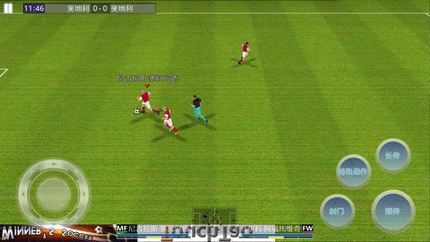 操作极简却策略十足:红色高亮标识为我方球员,通过虚拟摇杆精准跑位、智能按键触发传切/射门/铲断,进球就是唯一目标!