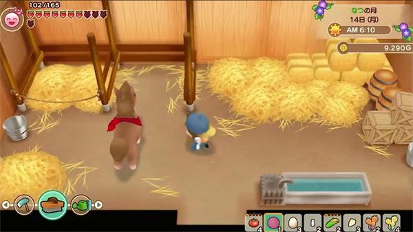 不止种田养畜——你拥有完整的人生节奏:清晨喂牛挤奶、午后耕种施肥、傍晚垂钓烹饪、夜晚赴约温泉或参加节日庆典;可自由切换农夫、矿工、厨师、渔夫等多重身份,每条成长线均有深度养成体系与专属成就。农场扩建无上限,房屋装修随心搭,连宠物都能取名、抚摸、带出门散步。