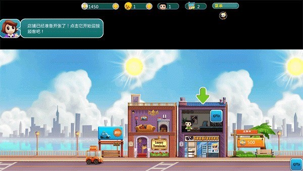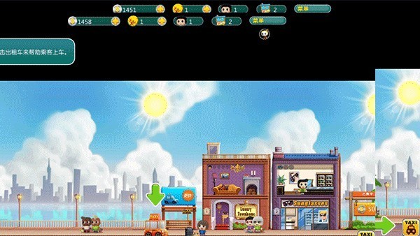 启动游戏后,系统自动开启沉浸式教学:首栋公寓与基础商店已就位,点击商店即可上架商品,迈出盈利第一步;随后根据提示开设新铺、招募员工、补充库存,节奏紧凑却不压迫。特别设计的“出租车系统”让街区真正活起来——右下角出现闪烁图标即有乘客呼叫,点击接单、拖动方向箭头送达目的地,轻松赚取额外金币,同时提升居民满意度。