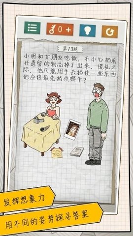 告别千篇一律的点击拖拽——在这里,你需要旋转手机、长按屏幕、疯狂摇晃、甚至对着麦克风大喊;谜题答案往往藏在UI细节、系统设置或设备特性中,每关都像一次微型“行为实验”,用最轻巧的操作触发最意想不到的通关瞬间。