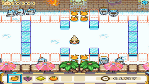 你不是在单纯逃命——而是在经营一场移动甜品站!一边高速穿越机关密布的街道与屋顶,一边拾取香蕉、蓝莓、柠檬等新鲜水果;遇到追兵?立刻拖拽场景中的冰晶原料,在敌人必经之路冻结出临时障碍;更可将钻石类道具精准拖至粪便下方,触发连锁反应,制造出关键冰淇淋成品——点击即完成关卡目标。每一步操作都兼顾节奏感与策略性,简单指令背后藏着丰富的物理反馈与解谜乐趣。