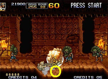 专为触屏优化双模操控:左侧虚拟摇杆实现流畅左右移动(类PC端A/D键响应),右侧自定义射击区支持点按/长按多段攻击(对应原版J键逻辑);武器切换通过独立功能按钮一键完成,无延迟、不误触,让连招、闪避、换弹一气呵成,真正还原街机厅里的指尖快感。