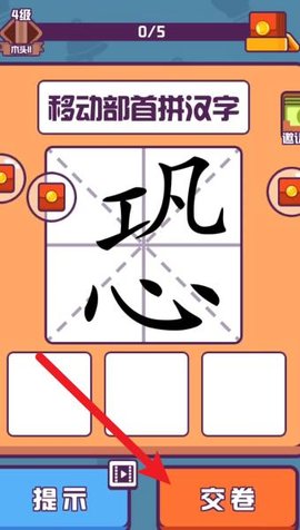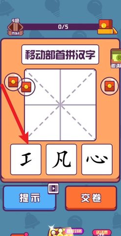 3、确认组合无误后,点击下方【交卷】按钮,系统实时解析构字合理性与文化关联度;
