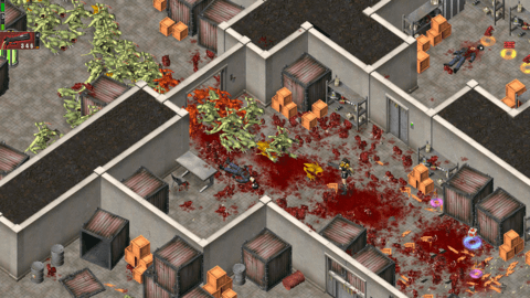 俯视+追尾混合视角设计,兼顾战术广度与操作精度;画面干净利落,无冗余UI干扰,专注呈现枪火喷射、弹道轨迹与受击反馈;像素级打磨的复古画风搭配清脆枪声、凌厉击杀动画与高对比血腥表现,打造令人肾上腺素飙升的沉浸式战场。