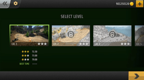 2、在车库中挑选你的首台越野座驾,并选择首个挑战地图——每个关卡均设有时限目标,成败就在分秒之间。