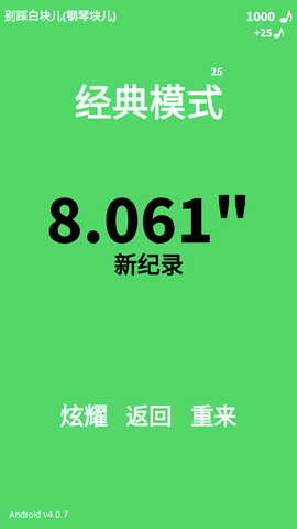 ——安全纯净:无第三方插件、无诱导下载、无隐私窃取,绿色通过各大应用市场审核; ——持续更新:每月新增主题关卡+热门曲目,运营团队长期维护,BUG即时修复; ——社交属性强:支持微信/QQ一键分享战绩,发起好友挑战赛,让节奏对决更有温度; ——成就体系完整:从“初试锋芒”到“白块宗师”,50+成就勋章激励成长,记录你指尖进化的每一步。