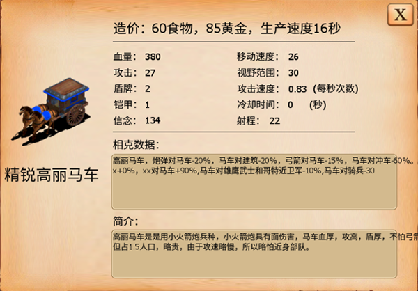 高丽:马车兵正面绞杀能力顶级,阵地战统治力突出,但机动短板明显,需依赖队友协防或前置布防体系。