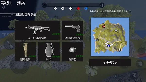 在关卡设置页,自由选择地图、胜利条件(据点数/击杀数/时间限制)、出生间隔、AI强度及队伍人数,打造专属战场规则;