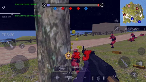 进入战场后,左手操控移动,右手执行射击、跳跃、卧倒、装弹、使用道具等全部动作;