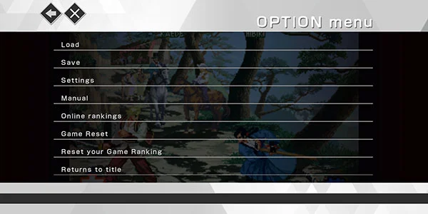 6、胜利后自动推进剧情或挑战序列;若需调整节奏,随时点击【OPTION】→【Save】保存进度,或【Load】即时读档,自由掌控每一场决斗。