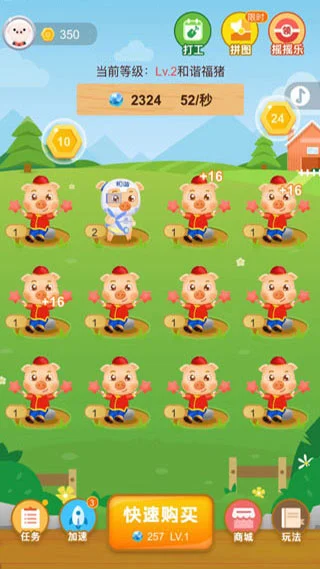 4、持续升级福猪的经验、等级与成长速度,让产出效率指数攀升;