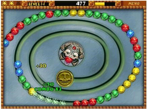 每关目标明确而紧迫:在整条弹珠链完全没入终点洞穴前,将其100%清除。生命值有限,失误即扣血,容错率随难度攀升而急剧收窄。