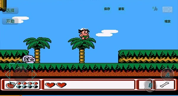启动即进主线,方向键控制移动,A键跳跃(加速后触发太跳),B键攻击;顶部常驻保存按钮,随时存档读档不惧失误;底部爱心实时显示生命值,击败敌人掉落水果即时回血。首关翼龙房间对话即可获取核心道具「龙蛋」,轻松开启进阶探索之旅。