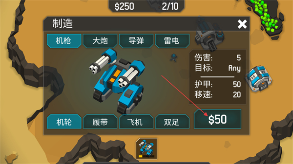 机甲升级节奏清晰:左下角进入机甲面板,待前置建筑(如科技中心、机甲工坊)建成后自动解锁升级选项;点击右下角“升级”按钮,消耗50金币即可强化机轮性能,提升机动性与作战响应速度。