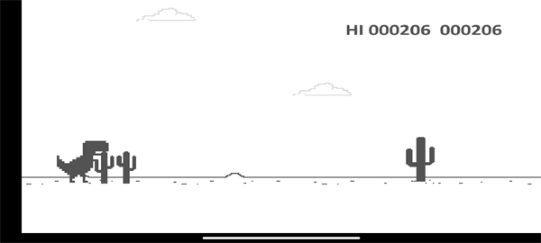 向上滑动屏幕——小恐龙腾空跃起,精准避开迎面而来的仙人掌与矿车;