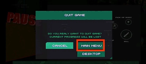 2. 进入第一关后,点击右上角【Menu】→【Quit】返回主菜单;