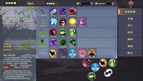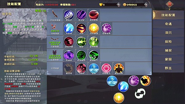 四大武器决定流派根基:刀剑斧主防(+25%物理防御)、法杖强控、弓箭暴击×3、侠客刃闪避×3+暴击×3;技能非固定模板——通过「小铁镐」找技能师升级,可延长CD、延长持续、叠加多层Buff并触发全新效果。十件装备各司其职: