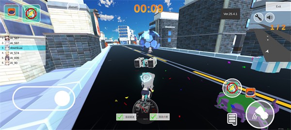 5、【道具制胜】——赛道沿途随机刷新导弹、护盾、闪电、香蕉皮等8类战术道具,拾取后点击图标即时释放,干扰对手、逆转局势、锁定胜局!