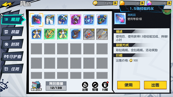 背包系统——位于主界面右侧,支持常规、装备、时装、守护者、任务五大分类背包,容量独立且充足(常规/装备各162格,时装/守护者各100格,任务背包50格)。当空间告急,点击“随身仓库”即可扩容,每类仓库额外提供100格安全存储空间,资源管理井然有序。