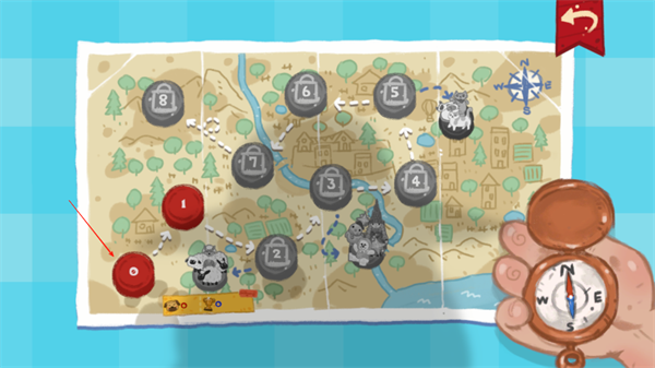 2、进入风格清新的手绘关卡地图,从第一站开始你的旅程