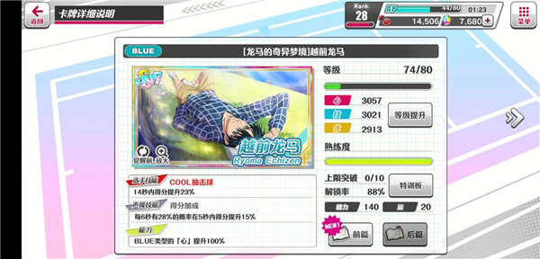 积累育成点与特训道具后,立即开启「卡牌→所持卡牌→特训板」进行属性强化。SR/SSR角色达指定等级后可「觉醒」解锁全新卡面;重复获得同角色卡片时,特训板将自动延长,大幅提升资源利用效率——这才是高分通关的底层保障。