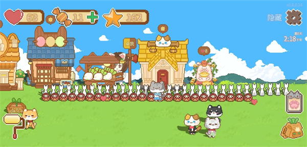 清晨播种、午后浇水、傍晚收获——作物生长节奏舒缓自然,不肝不氪。萝卜、草莓、青椒等作物可摆摊零售、委托收购或加工成特色商品,收益直接转化为建设资金。新手期猫奶奶贴心指引,后续更可解锁栽培盆、批量种植、委托刷爱心等进阶玩法,稳步迈向“种田自由”(8K级解锁全盆栽,约需16万爱心)。