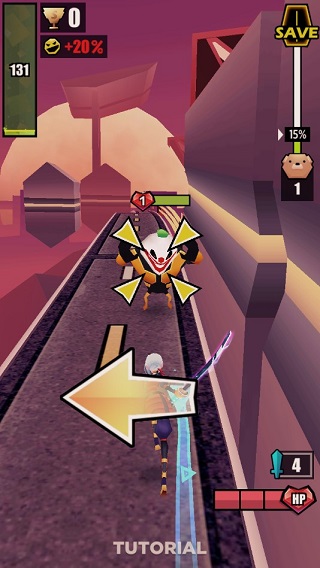 你将化身代号Doris的战斗少女,在霓虹废墟、蒸汽工厂、糖果马戏团等风格迥异的危机场景中全速突进。这不是被动闪避的跑酷——而是主动出击的战斗!滑动斩击、俯冲劈砍、高空踩踏、范围AOE……每一次操作都伴随拳拳到肉的打击反馈与镜头震动,让“杀敌”成为跑酷的默认节奏。障碍不是阻碍,是起跳点;小丑不是路人,是待清算的目标。速度越快,战意越燃,爽感越炸裂。