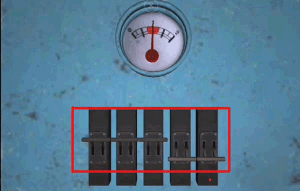 ? 第四扇门:按图示方向拧动门锁旋钮;最终正门需拨动油箱状机关完成解锁;