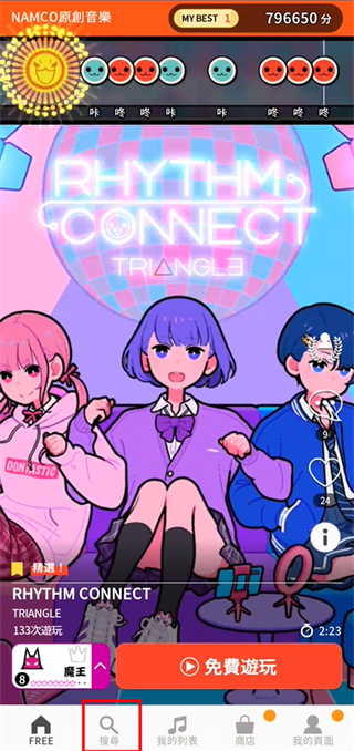 进入游戏后,上滑下滑快速浏览曲库;点击放大镜图标一键搜索心仪歌曲;选择曲目后点击“免费游玩”,自定义道具并确认开始——接下来,就是属于你的舞台: