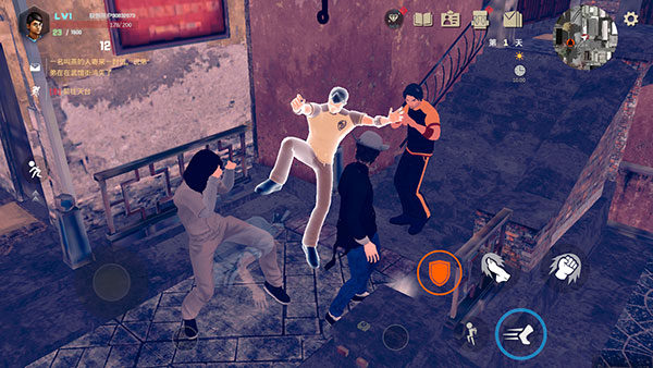 告别无脑站桩,体验有节奏、有预判、有呼吸感的真实打斗:虚拟轮盘精准控制走位,轻重拳组合触发不同招式模组;敌人攻击前瞬间高亮盾牌图标,点击即可格挡反击;多人围攻时,右下角蓝色闪避按钮助你腾挪翻跃、化险为夷;击败对手后拾取装备道具,实时强化战力——每一次出招,都是对反应与策略的双重考验。