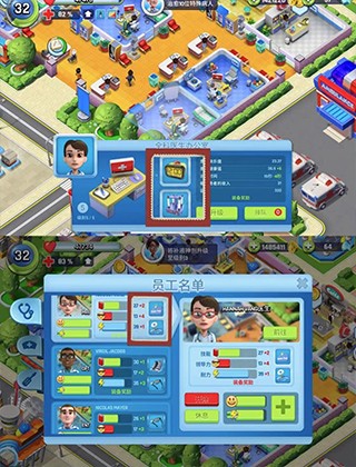 诊室效能≠单点升级!它由三大要素动态绑定:医生/护士的等级与技能直接决定科室治疗上限;科室物品(如智能闹钟)可压缩治疗耗时,降低患者等待焦虑;医生物品则强化个体操作效率。只有高资质医生入驻诊室,该科室才能正式接诊——人才、硬件、空间,缺一不可。
