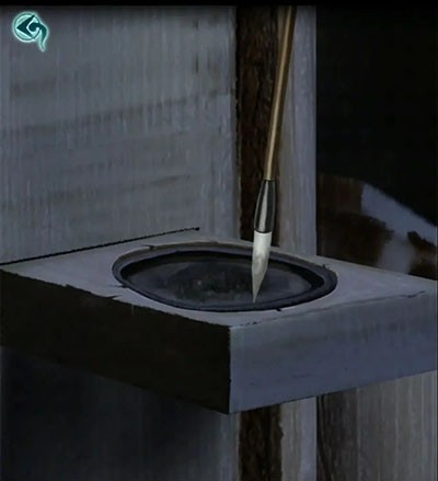 携米糕至院中喂女童,水缸解锁;进入正面仓库,纸人托盘不可直接取墨块,需放入【木炭】置换得【墨块】;日历线索“三角形=8,正方形=18,圆形=28”为后续密码埋点;小房子侧壁五动物图腾,依谜语“龟-刺猬-鱼-大白鹅-狗”顺序点击,弹出【砚台】。