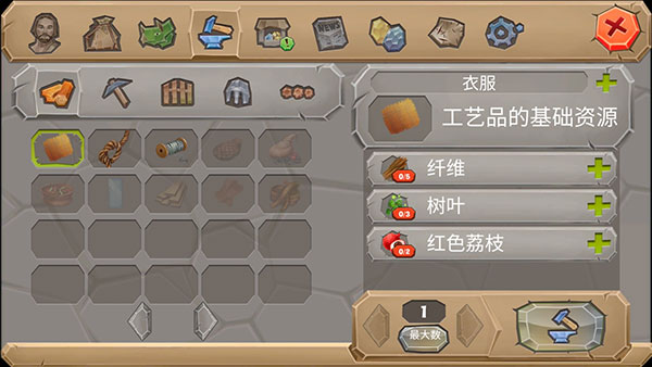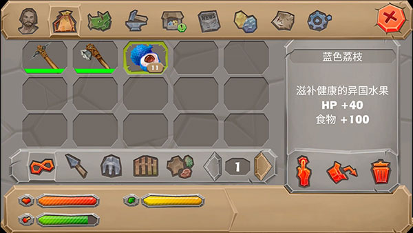 石镐是生产力革命起点:告别徒手撸树,高效获取木材;敲击岩层产出碎石与石料,为石斧、石矛量产奠基。优先解锁木屋建造技术,同步升级水袋——这是向内陆辐射生存版图的战略支点。