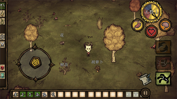 左手摇杆操控角色移动,右手一键交互采集/攻击/建造;资源即生命——草、树枝、燧石、怪物掉落物,一切皆可拾取、合成、升级;小地图实时定位,助你在迷雾森林、熔岩裂谷与巨人遗迹间精准穿行。
