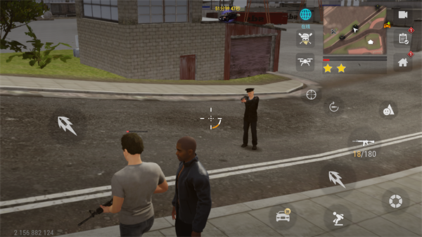 射击手感扎实,弹道物理真实:后坐力影响连续射击精度,掩体破坏有进度条,爆炸冲击波会掀翻车辆与人物。轻重武器库覆盖近中远全距离——托卡列夫手枪、UZI冲锋枪、AK47步枪、RPG火箭筒,甚至隐藏载具“潘泽尔坦克”,全部可通过任务解锁、地图探索或资产经营获取。通缉系统动态演进:1星扰民,5星特警围剿,15星出动武装直升机——躲避喷漆店、摧毁警用设施、利用复杂地形周旋,每一次逃脱都是对操作与策略的双重考验。