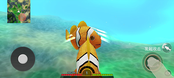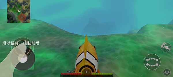 滑动屏幕,精准调整游弋方向;拖动摇杆,自如控制加速与后撤——操作简洁却富有深度。遭遇猎物?点击右下角攻击键发起致命突袭;能量蓄满?右上角进化图标亮起,即刻触发形态跃迁!想以势压人?点击右侧中央冲撞按钮,用爆发力横扫弱者;想切换视野?轻触右下角“小眼睛”按钮,瞬间在追击视角与全景巡航间自由切换。当所有操作融会贯通,你将真正成为这片海域的呼吸与节奏本身。