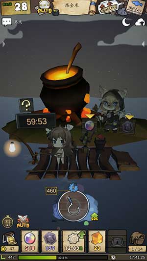 游戏以RANK等级划分关卡,每升一关解锁关键系统:第4关开放「炼金术」(高效兑换天赋值)、第5关解锁「鱼叉炮台」、第6关开启技能栏、第16关上线「海上农场」与「探测仪」、第22关迎来高光Boss「美人鱼」与「富饶神坛」、第27关引入「废品商」深度循环……天赋树聚焦核心体验——优先点满「自动钓鱼」「自动航行」「废品叠加」「保管箱扩张」,挂机时长与资源收益直接翻倍。