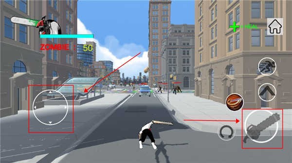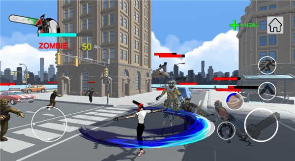 左手虚拟摇杆精准控位,右手长按电锯键持续挥砍——锯齿撕裂血肉的真实震感,配合环形AOE伤害,让近身敌人无处可逃。