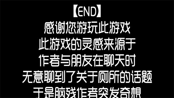 极简黑底白字界面,却暗藏精密叙事机关:每个选项皆为伏笔,每次失败都是线索;荒诞情节裹挟着存在主义幽默,重口味桥段下是对日常逻辑的温柔暴击;短小精悍却不失厚度——你以为在逃厕所,实则在解构选择、质疑规则、甚至挑战游戏本体。它不提供标准答案,只交付一场酣畅淋漓的思维越狱。