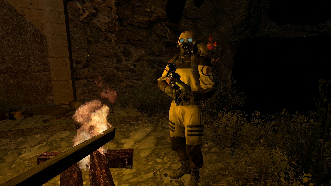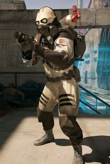 【防化步兵】——联合军最基础却最具战术协同性的单位。“回声一号正在强制安定目标”。身着连体防化服、背负氧气罐,活跃于Xen毒气弥漫区域。成群行动(每小队2–3名),擅用冲锋枪4–5连发点射+手雷压制,地形开阔时迅速展开交叉火力网。弱点明显:无护甲、惧火(氧气罐被击中会惊慌呼救并提醒队友散开),是玩家熟悉战斗节奏的入门对手。