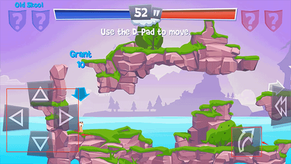 3、战斗中左区操控角色位移与瞄准,右区跳跃/互动;点击武器栏切换道具,击倒对手或率先抵达终点即可获胜;