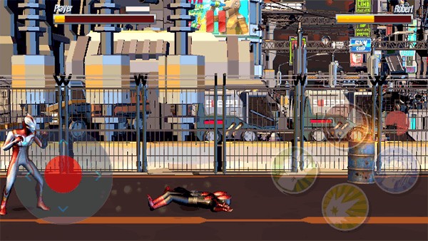 进入游戏后,首屏即可自由选择心仪奥特曼角色,点击“Continue”即刻开启光之征途;操作逻辑清晰易上手:支持外接手柄(方向键控制移动/跳跃)或触屏双摇杆模式——左手操控角色位移与闪避,右手精准释放普通攻击、蓄力技与终极必杀;技能并非简单点按,需结合方向输入(如前+拳触发突进重击、下+必杀触发防御反击),大幅提升操作深度与战斗节奏感;同时,战场瞬息万变,敌人可能从背后突袭,考验你的全局意识与转身反打能力。