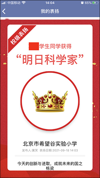 校级统一颁发的表扬徽章体系,记录点滴进步,强化正向激励