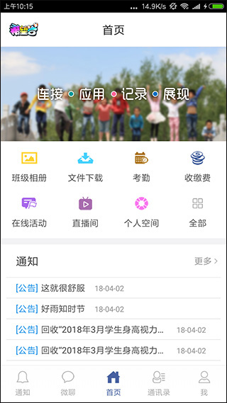 一键式家校服务:整合通讯录、通知中心、考勤系统、费用台账,日常事务“一屏统览、一点即办”;