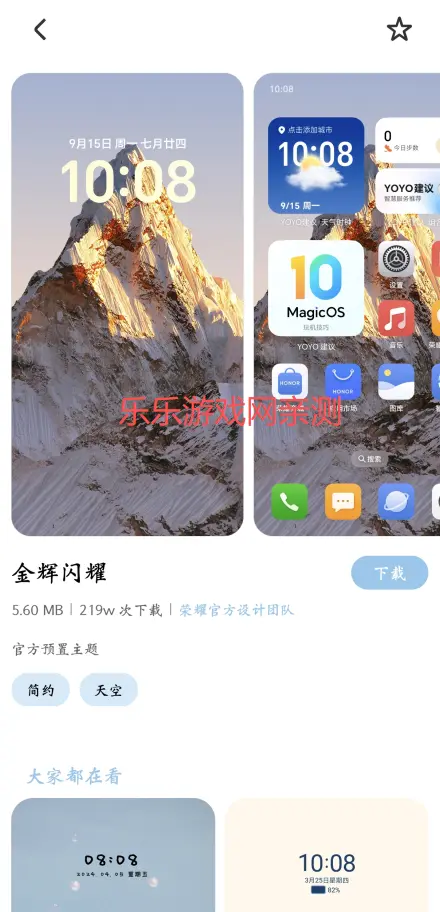 荣耀主题商店最新版——荣耀官方出品的系统级美化平台,专为荣耀及华为手机用户深度优化。汇聚海量设计师原创主题、高清壁纸、个性字体、专属铃声与灵动小组件,支持一键应用、智能推荐、跨设备同步与自由DIY,让每一次点亮屏幕都成为彰显个人审美的仪式感时刻。
